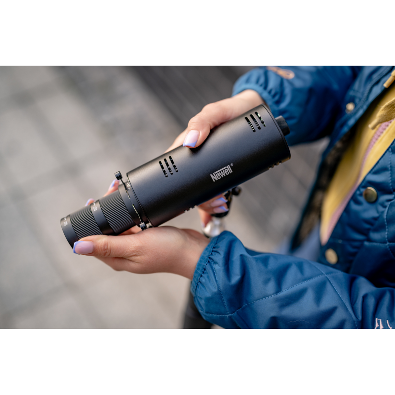 Strumienica Newell Perseo Mini została wyposażona we wbudowany akumulator o pojemności 3000 mAh, który zapewnia nawet do 1,5 h pracy bez potrzeby sięgania po ładowarkę. To idealne rozwiązanie do zdjęć plenerowych, sesji w nietypowych lokalizacjach czy dynamicznych ujęć, gdzie nie ma miejsca na plączące się pod nogami kable. Urządzenie obsługuje zasilanie przez port USB-C, co oznacza, że możesz je ładować z power banku lub adaptera sieciowego. To pełna mobilność bez żadnych kompromisów.