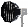 Dzięki 30 cm średnicy softbox oktagonalny Newell to idealny wybór dla osób, którym zależy na kompaktowych wymiarach i dużej mobilności. Świetnie nadaje się zarówno do fotografii portretowej, jak i produktowej. Z powodzeniem wykorzystasz go również przy produkcjach video nagrywanych smartfonem. W zestawie znajdziesz dwa dyfuzory, które umożliwiają regulację rozproszenia światła, oraz plaster miodu (grid), który precyzyjnie ukierunkuje wiązkę na wybrany obiekt. Dzięki temu masz pełną kontrolę nad każdym kadrem, wzbogaconym o miękkie, równomierne oświetlenie.