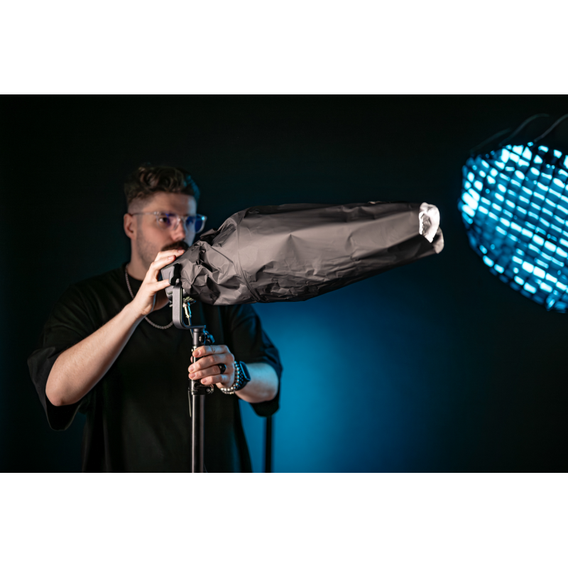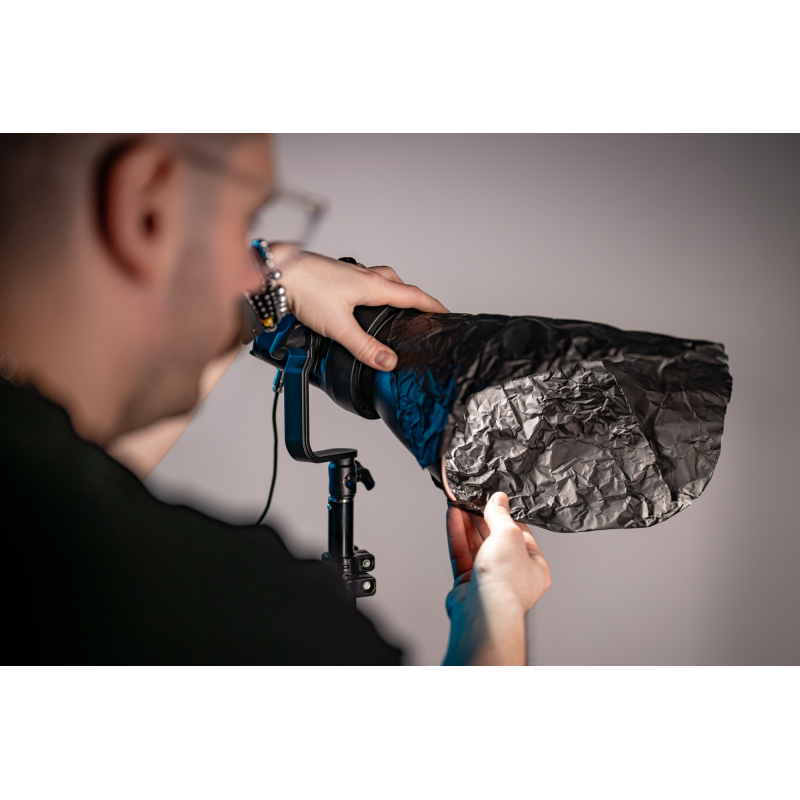 Czarna folia Newell Cinenoir to najlepszy sposób na to, aby okiełznać niesforne lampy na planie filmowym lub fotograficznym. Matowa, dwustronna powierzchnia skutecznie pochłania światło, zapobiegając niepożądanym odbiciom i blikom. Folia doskonale sprawdza się do odcinania fragmentów wiązki, maskowania wybranych części lamp, ograniczania rozlewania się promieni czy ochrony obiektywu przed bocznymi refleksami. Pozwala fizycznie zablokować światło, które obniża kontrast lub wpada w kadr z niewłaściwej strony.