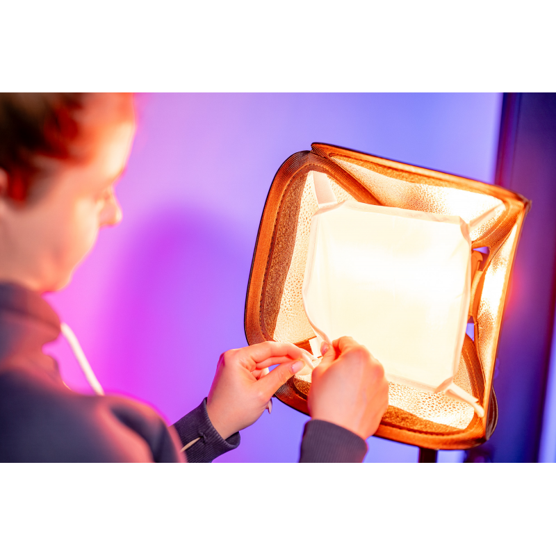 W zestawie z softboxem Newell 25 cm Mini Bowens znajdziesz tkaninę dyfuzyjną, która zamocujesz na rzep do krawędzi rozłożonego softboxa. Dyfuzor skutecznie rozprasza światło, eliminując ostre cienie i tworząc miękkie, równomierne oświetlenie przyjemne dla oka. W połączeniu z gridem zyskujesz pełną kontrolę nad charakterem oświetlenia.