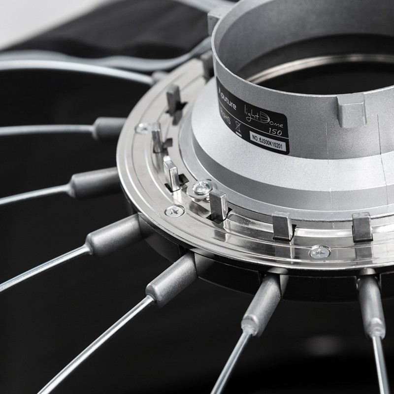 W modelu Light Dome 150 nie zabrakło rozwiązań z docenionego w branży filmowej klosza Aputure Light Dome II. Umieszczenie 16 prętów we wzmacnianych materiałowych prowadnicach pozwoliło nadać modyfikatorowi kształt 32-boku, który jest bardzo zbliżony do koła. Dzięki temu umożliwia on uzyskanie pięknych owalnych odbić, które przeniosą Twoje filmy i materiały video na jeszcze wyższy poziom profesjonalnej realizacji!
