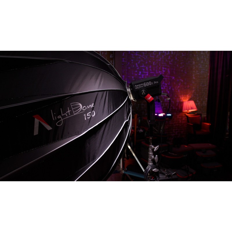 Softbox Aputure Light Dome 150 pozwoli szybko i wygodnie rozszerzyć możliwości lamp wspierających standard montażowy Bowens, w tym lamp Aputure z serii Light Storm. Dzięki autorskim rozwiązaniom w ciągu kilku sekund rozłożysz kopułę i dostosujesz ją do swoich potrzeb. W zestawie z softboxem znajdziesz dwie tkaniny dyfuzyjne oraz grid.
