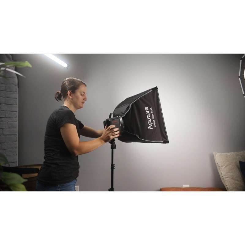 Softbox Aputure Light Box 45 x 45 sprawdzi się wszędzie tam, gdzie nie ma miejsca na korzystanie z większych modyfikatorów światła. Nagrywanie streamów, vlogów lub wywiadów, a także wykonywanie zdjęć produktowych i portretów – ta ważąca zaledwie 680 g konstrukcja sprawdzi się w każdej z tych sytuacji. Softbox wykonano z wysokiej jakości materiałów, które gwarantują niezawodność oraz długie użytkowanie. Przemyślana konstrukcja zapewnia optymalne odprowadzenie ciepła, a także nadaje wymaganą sztywność. W zestawie nie zabrakło też torby transportowej, do której spakujesz softbox wraz z dodatkowymi akcesoriami.