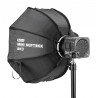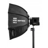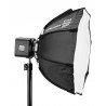 Softbox oktagonalny to świetna alternatywa dla kwadratowych stelaży paneli dyfuzyjnych, a także dużych konstrukcji 32-bocznych. Yongnuo YN55K wyróżnia się wygodnym systemem montażu, który bazuje na giętkich prętach oraz mocnych tkaninach. Softbox i akcesoria mieszczą się w torbie transportowej dołączonej do zestawu, która wraz z zawartością waży jedynie 450 g.