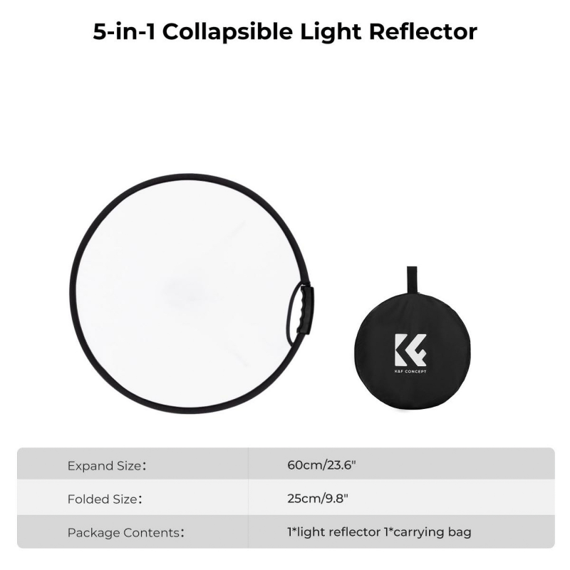 Blenda K&F Concept 5w1 – 60 cm wyróżnia się nie tylko funkcjonalnością, ale także mobilnością. Elastyczny stalowy stelaż sprawia, że można ją łatwo złożyć do kompaktowych wymiarów (Ø25 cm) i przechowywać w dołączonej do zestawu torbie. To idealne rozwiązanie dla fotografów i filmowców, którzy często pracują w terenie.