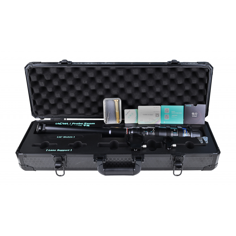Laowa Probe Zoom 15-24 mm T8 dostarczany jest w solidnej walizce zamykanej na klucz, która zapewnia maksymalne bezpieczeństwo podczas transportu i przechowywania. Jej wnętrze wypełniono pianką z precyzyjnie wyciętymi przegródkami, które idealnie dopasowują się do kształtu obiektywu i chronią go przed wstrząsami oraz uszkodzeniami mechanicznymi. W walizce znajdziesz również obejmy z gwintem do montażu obiektywu na szynie stabilizacyjnej, co ułatwia integrację z rigami filmowymi i systemami wsparcia. Dołączono również zestaw kluczy do walizki, precyzyjne śrubokręty oraz podkładki pod bagnet („shims"), które pozwalają na dokładną regulację ustawień ostrości – „back focus" i „front focus".