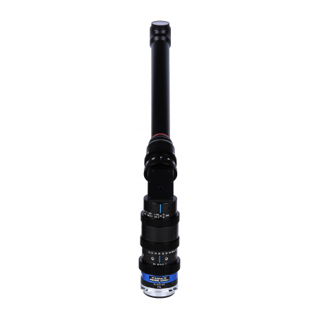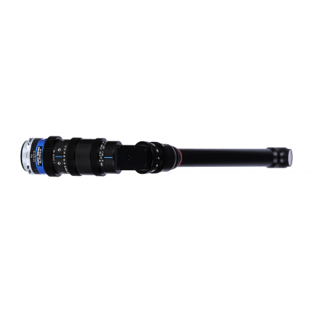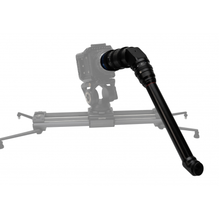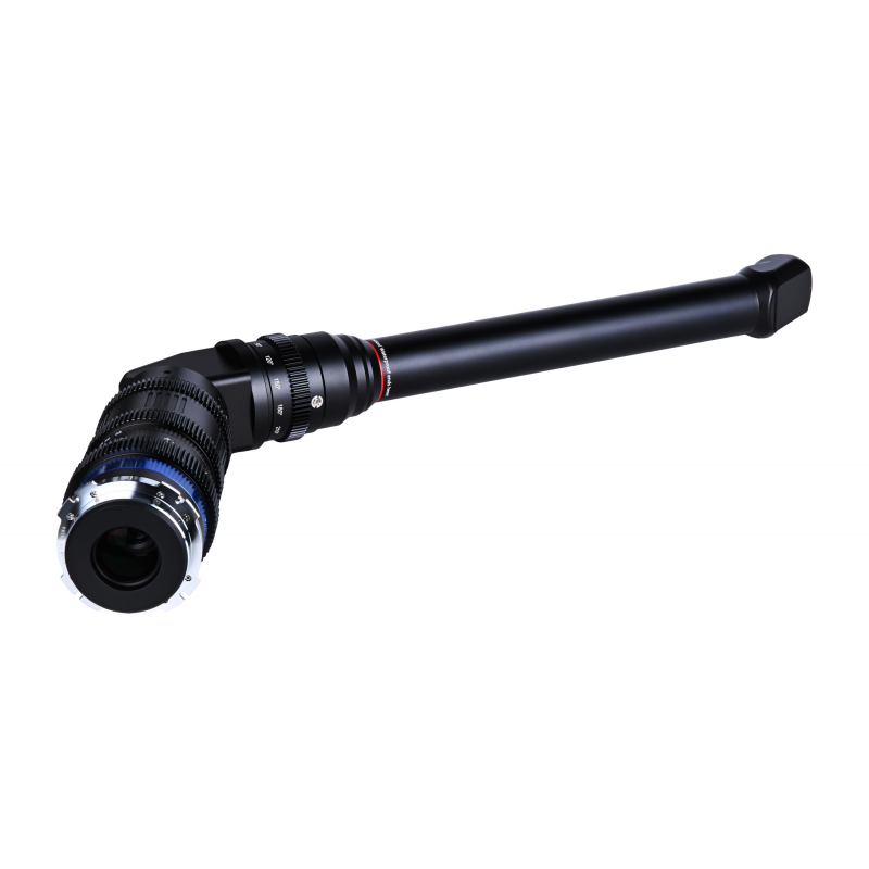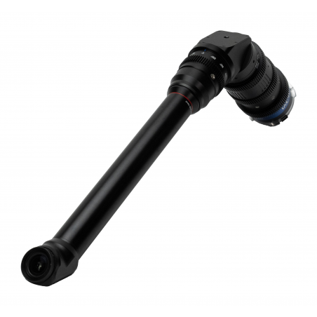 Prezentowany model wyróżnia peryskopowy element optyczny. Zakrzywiona konstrukcja tubusu pozwala filmować obiekty znajdujące się na poziomie gruntu, podczas gdy kamera pozostaje na wygodnej wysokości roboczej. To rewolucyjne rozwiązanie w pracy z małymi zwierzętami, roślinami rosnącymi przy ziemi czy produktami umieszczonymi na niskim poziomie. Dodatkowym atutem jest możliwość obrotu tubusu o pełne 360°, co daje Ci precyzyjną kontrolę nad orientacją kadru. Aby uzyskać idealną kompozycję wystarczy poluzować pierścień i obrócić tubus we właściwym kierunku.