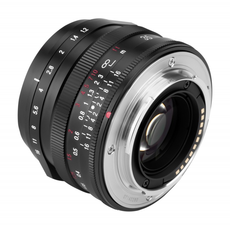 Przysłona Noktona 35 mm oferuje możliwość regulacji w zakresie f/1,2 - f/16, zapewniając odpowiednią swobodę podczas pracy z głębią ostrości dla większości codziennych zastosowań. Wartość przysłony regulowana może być w krokach co 1/3 EV. 12 listków kontrolujących przysłonę pozwala uzyskać przepiękne kremowe rozmycia w obszarach nieostrości.