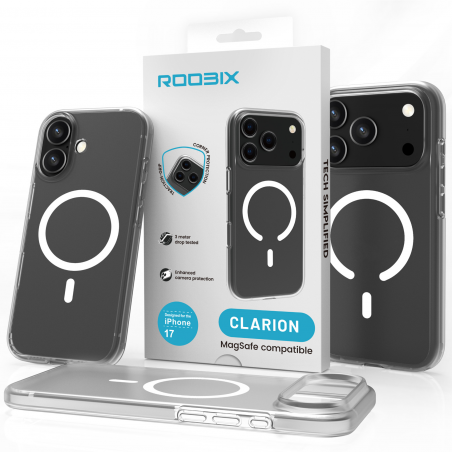 Etui wykonano z połączenia tworzyw TPU i PC, które gwarantują wysoką odporność na promieniowanie UV. Dzięki temu Roobix Clarion MagSafe zachowuje doskonałą przejrzystość nawet po wielu miesiącach użytkowania. Telefon zawsze wygląda jak nowy – bez nieestetycznego zażółcenia, smug czy matowienia. To idealny wybór dla tych, którzy cenią czystość formy i chcą podkreślić design swojego iPhone’a 17 Air.