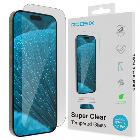 Szkło Roobix Super Clear do iPhone 17 Pro Max to połączenie trwałości, precyzji i estetyki. Gwarantuje idealną widoczność obrazu, doskonałe odwzorowanie kolorów i brak zniekształceń. Dzięki specjalnej powłoce powierzchnia szkła jest odporna na odciski palców, kurz i tłuste ślady, co pozwala zachować ekran w czystości przez dłuższy czas. To proste, skuteczne i trwałe rozwiązanie, które sprawia, że Twój iPhone 17 Pro Max pozostaje bezpieczny i zawsze wygląda perfekcyjnie.