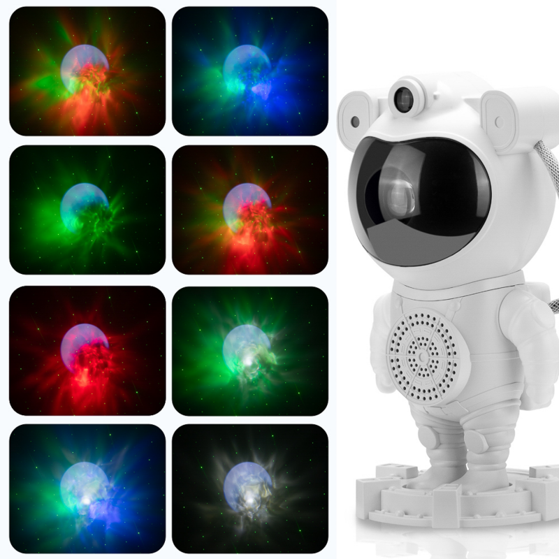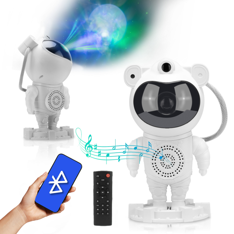 Projektor gwiazd Redleaf Astro Lamp to doskonały sposób na stworzenie kosmicznej atmosfery w Twoim domu. Realistyczna projekcja gwiazd, mgławic i księżyca pozwala zamienić sufit w pełne magii rozgwieżdżone niebo. Cztery kolory RGB, regulacja jasności i szybkości ruchu efektów świetlnych sprawiają, że każdej nocy możesz oglądać zupełnie inny pokaz. Wbudowany głośnik Bluetooth umożliwia odtwarzanie muzyki, bajek lub kojących dźwięków natury. Figurka astronauty z ruchomymi rękami i obrotową głową stanie się wyjątkową zabawką w pokoju dziecka. Pilot zdalnego sterowania zapewnia pełną wygodę użytkowania. Dzięki automatycznemu wyłączaniu i zasilaniu USB-C projektor jest funkcjonalny i energooszczędny. Idealny do relaksu, zasypiania i dekoracji wnętrza!