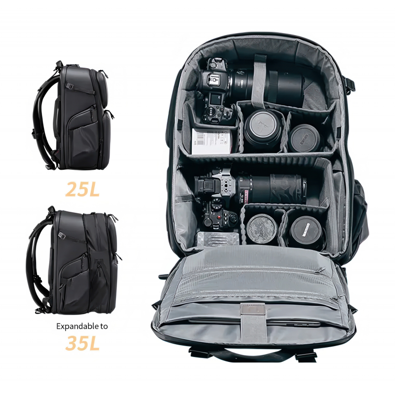 Dzięki pojemności 25 litrów, rozszerzalnej do aż 35 litrów, plecak pomieści cały Twój sprzęt fotograficzny – w tym nawet dwie lustrzanki i kilka obiektywów – i nadal znajdzie się miejsce na drobne akcesoria, odzież czy przekąski. Regulowane przegrody zapewniają elastyczną organizację, więc możesz z powodzeniem dostosować wnętrze do własnych potrzeb. To właśnie jest komfort w najbardziej praktycznym wydaniu! Ten plecak powstał po to, byś mógł/mogła zabrać na wyprawę wszystko, co niezbędne.