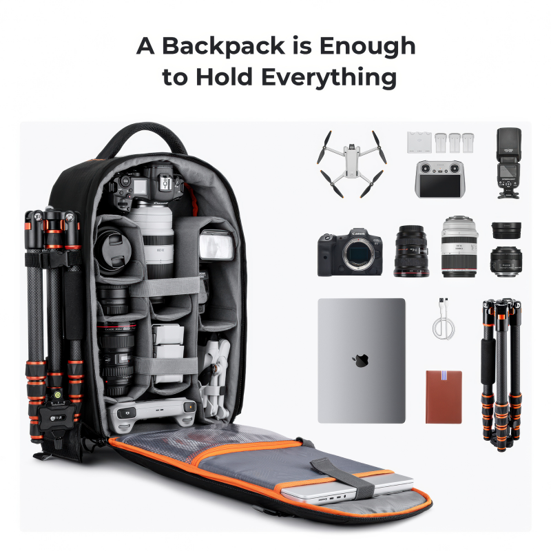 Plecak fotograficzny K&F Concept Nature Wander 05 18 l - czarny - Lekki i pojemny – gotowy na każdą wyprawę