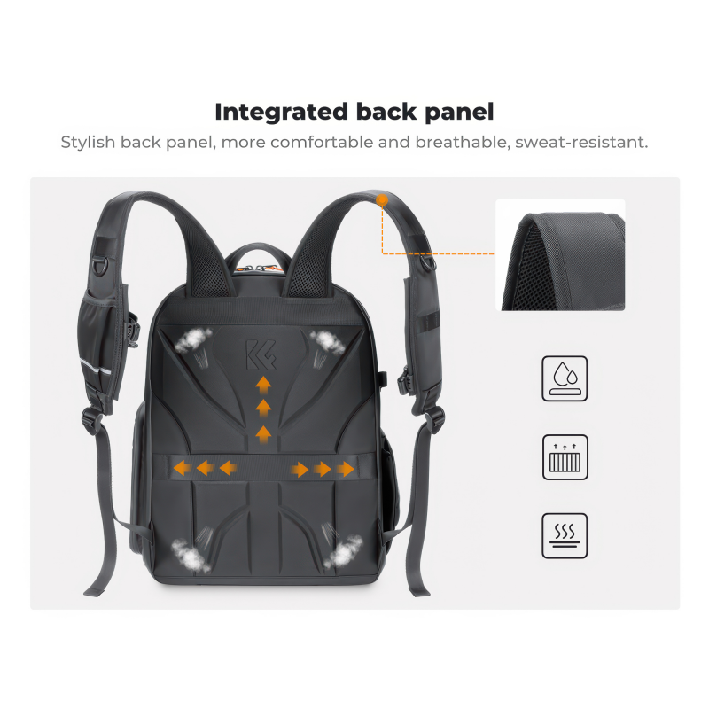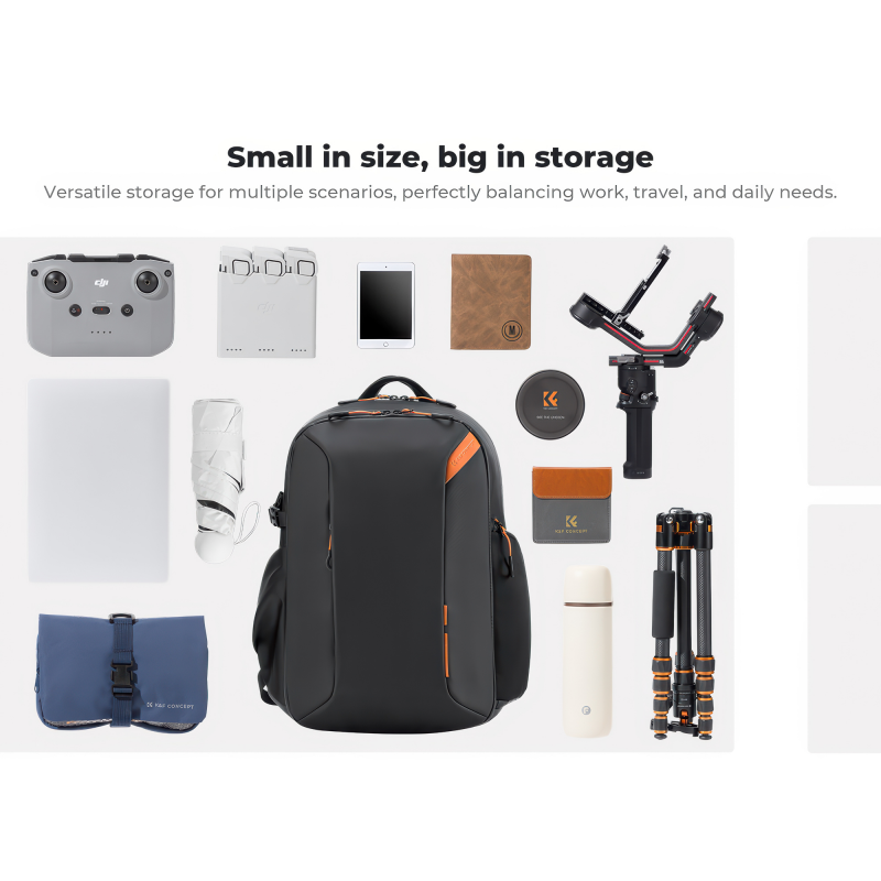 K&F Concept Nature Wander 09 to plecak zaprojektowany z myślą o tych, którzy łączą pracę twórczą z codziennym życiem. Przednia kieszeń została zoptymalizowana pod kątem organizacji rzeczy osobistych – pomieści notatnik, smartfon portfel czy klucze. Komora główna, otwierana na całej długości, oferuje bezpieczne i funkcjonalne miejsce na sprzęt fotograficzny. To idealne rozwiązanie dla osób, które szukają jednego, uniwersalnego plecaka – do pracy, na sesję i w podróż.
