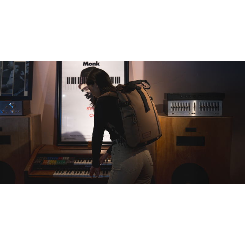 Wnętrze plecaka Wandrd Prvke 21 v4 skrywa przemyślany układ komór: osobna przegroda na laptopa i tablet, wyściełane kieszenie organizacyjne, ukryta kieszeń na AirTaga oraz przestrzeń na klucze czy baterie – wszystko ma tu swoje miejsce. Głębsza kieszeń na butelkę, statyw lub parasolkę, 8 punktów mocowania akcesoriów i wygodny system rozwijania „roll-topu” ze zintegrowanym suwakiem sprawiają, że dostęp do najpotrzebniejszych rzeczy jest zawsze szybki i wygodny.