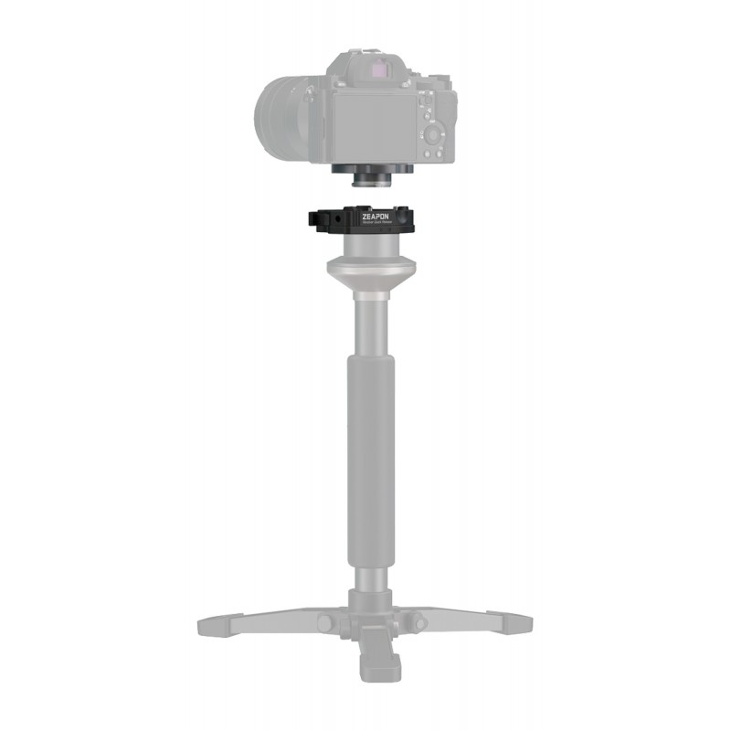 Podczas pracy z uchwytem szybkiego montażu Zeapon Revolver Quick Release nie musisz zawracać sobie głowy rozważaniami na temat kompatybilności gwintów, w jakie wyposażono towarzyszące Ci urządzenia. Ten, który zastosowano w płytce szybkiego montażu, zapewni wygodną pracę w standardzie 1/4" oraz 3/8". Wszystko za sprawą sprężynowego adaptera, który sam schowa się wewnątrz obudowy, gdy przyjdzie Ci pracować z mniejszym gwintem. A co najważniejsze – takiej przejściówki na pewno nigdy nie zgubisz!