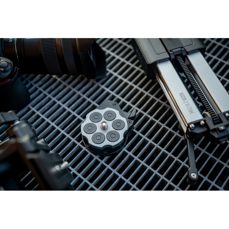 Kształt nawiązujący do bębna rewolweru ma tutaj bardzo konkretne zastosowanie. Płytkę szybkiego montażu możesz umieścić w adapterze na 6 różnych sposobów. W przeciwieństwie do klasycznych prostokątnych szybkozłączek zapewnia to znacznie większą łatwość "trafienia" w odpowiednie miejsce. Takie rozwiązanie to 6 różnych ustawień aparatu, bez konieczności odkręcania płytki lub adaptera, za każdym razem, gdy będziesz chciał/a skierować obiektyw w nieco innym kierunku.Płytka szybkiego montażu Zeapon Revolver Quick Release Pin - Idealne dopasowanie