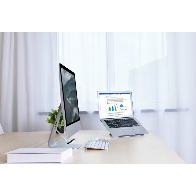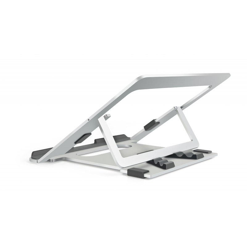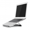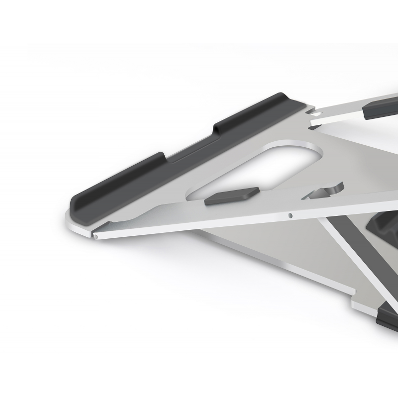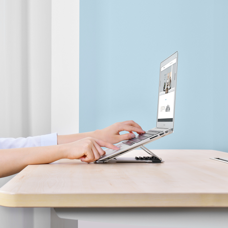 Bezpieczeństwo Twojego laptopa to kolejny priorytet. Wyposażona w silikonowe podkładki antypoślizgowe, podstawka gwarantuje stabilne ułożenie urządzenia, zapobiegając jego przesuwaniu się podczas użytkowania. Solidna konstrukcja z aluminium zapewnia nie tylko elegancki wygląd, ale także wytrzymałość na długie lata. Podstawka jest kompatybilna z laptopami o średnicy od 11 do 15,6 cali, a także z tabletami, zeszytami oraz książkami, co czyni ją wszechstronnym narzędziem, które odnajdzie się na każdym biurku.