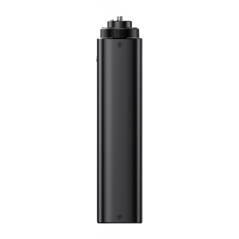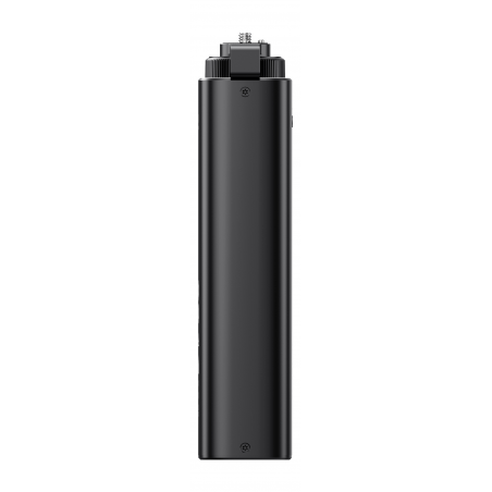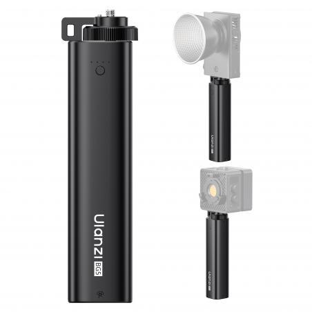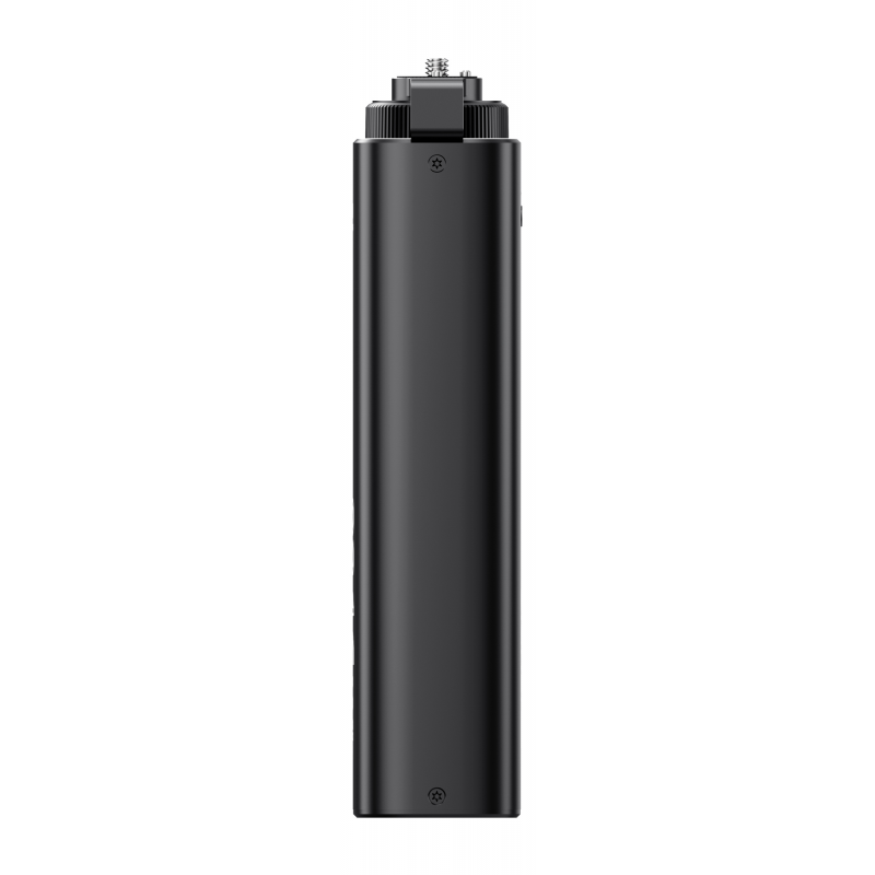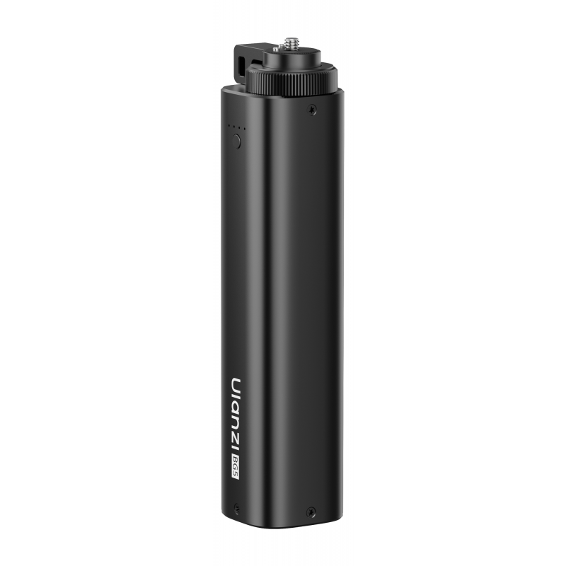 Power bank Ulanzi BG5 został zaprojektowany jako "battery grip", czyli połączenie uchwytu i zewnętrznego akumulatora. Podłużna, ergonomiczna konstrukcja sprawia, że możesz wygodnie trzymać go w dłoni, zyskując jednocześnie dodatkowe źródło zasilania. U góry znajdziesz gwint 1/4” z wysuwanymi pinami pozycjonującymi, które dodatkowo stabilizują lampę lub kamerę. Na dole umieszczono drugi gwint 1/4”, dzięki czemu power bank Ulanzi BG5 można zamontować na statywie, monopodzie albo ramieniu. To rozwiązanie, które porządkuje setup i zapewnia dodatkową „energię”, która jest zawsze w zasięgu ręki.