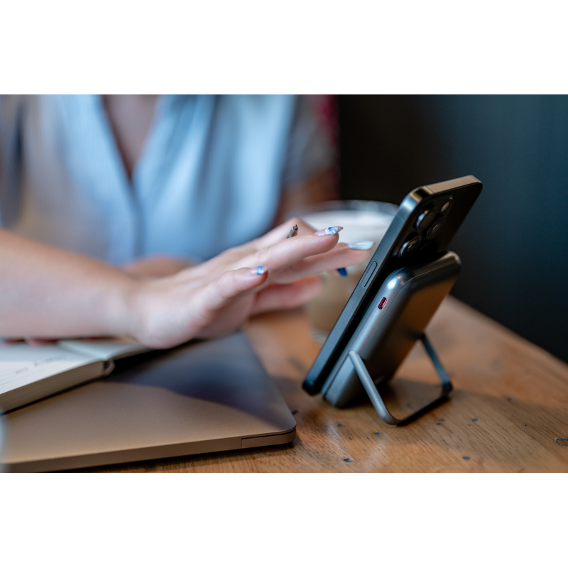 Power Bank Newell MS-10000 to nie tylko wszechstronne źródło energii, ale również funkcjonalna stacja ładująca. Dzięki zintegrowanej podstawce, która odchyla się w zakresie 45 stopni, możesz wygodnie oglądać filmy lub prowadzić wideorozmowy. Ten praktyczny dodatek zamienia power bank w estetyczną stację ładowania na biurko, pozwalając na jednoczesne ładowanie i użytkowanie urządzenia.