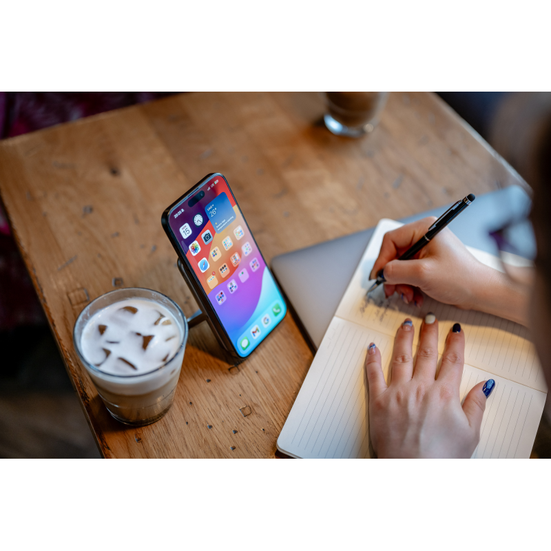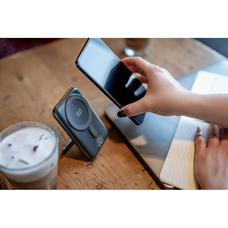 Power Bank Newell MS-10000 pozwoli Ci skutecznie wykorzystać potencjał trybu czuwania, który oferuje system iOS. Funkcja automatycznie aktywuje się, gdy Twój iPhone zostanie połączony z power bankiem za pomocą złącza MagSafe i ustawiony w poziomie. W tym trybie Twoje urządzenie zamienia się w centrum informacji, wyświetlając na ekranie zegar, powiadomienia, kalendarz lub inne ważne dla Ciebie informacje. Tryb czuwania pozwala również wykorzystać iPhone'a w charakterze cyfrowej ramki do zdjęć, dzięki czemu możesz cieszyć się ulubionymi fotografiami, za każdym razem, gdy spojrzysz na ekran. To idealne rozwiązanie, kiedy telefon towarzyszy Ci na biurku lub nocnym stoliku.