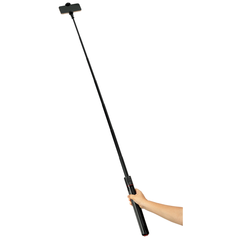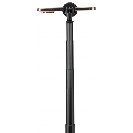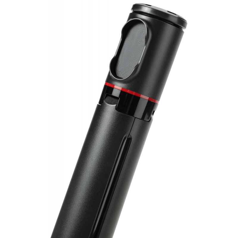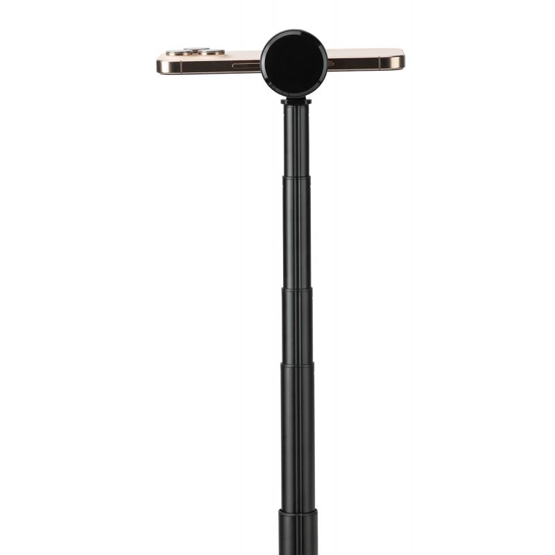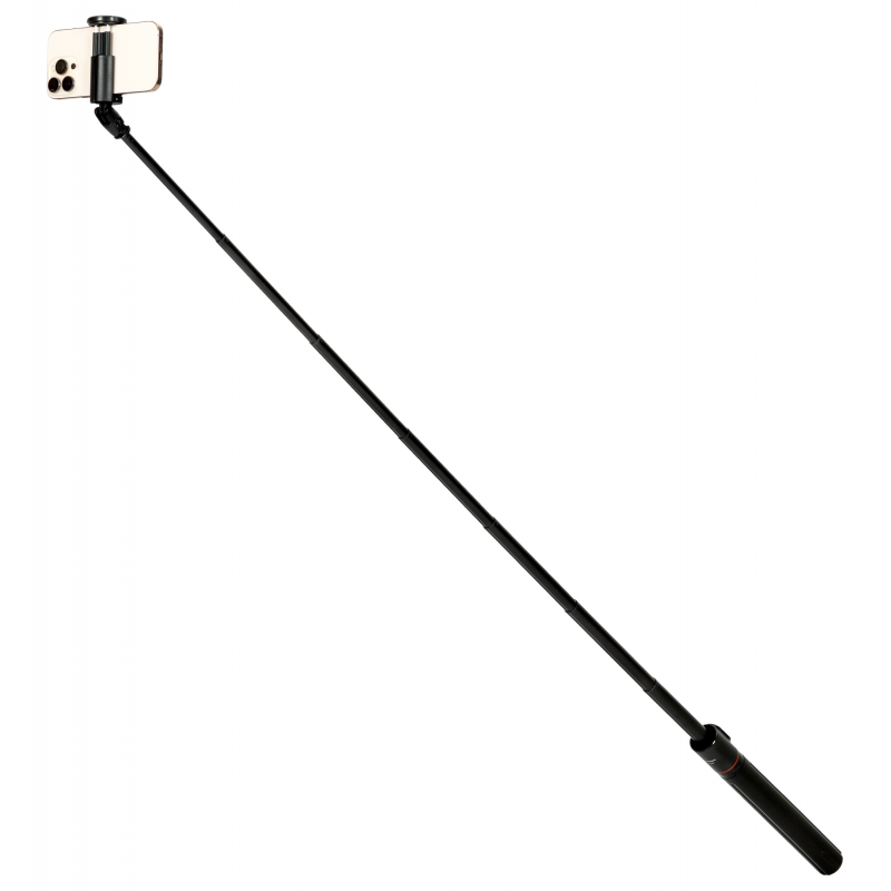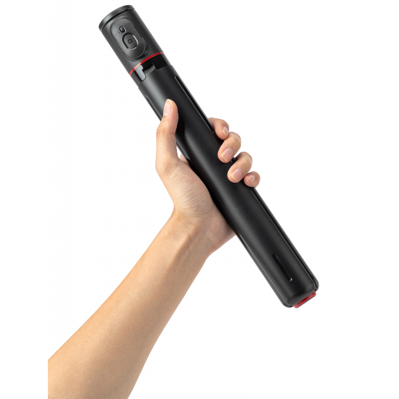 Fotopro TL-803 to innowacyjne połączenie selfie sticka i statywu, który rozkłada się automatycznie po postawieniu na ziemi – wystarczy nacisnąć przycisk. Jego maksymalna wysokość to 177 cm, dzięki czemu bez trudu uchwycisz w kadrze całą swoją sylwetkę lub grupę znajomych. Szeroka podstawa (42,7 cm rozstawu) zapewnia doskonałą stabilność. Po złożeniu statyw przyjmuje kształt smukłego walca o długości zaledwie 33,8 cm. Konstrukcja kryje też rozkładany uchwyt na smartfon oraz pilot Bluetooth umieszczony w magnetycznym uchwycie. Mocowanie jest kompatybilne z telefonami o szerokości 40-94 mm. Regulacja pozycji pozwoli Ci kadrować w pionie, w poziomie, pod kątem i od góry. Ponadprzeciętnej funkcjonalności towarzyszy również eleganckie połączenie matowych i błyszczących powierzchni.
