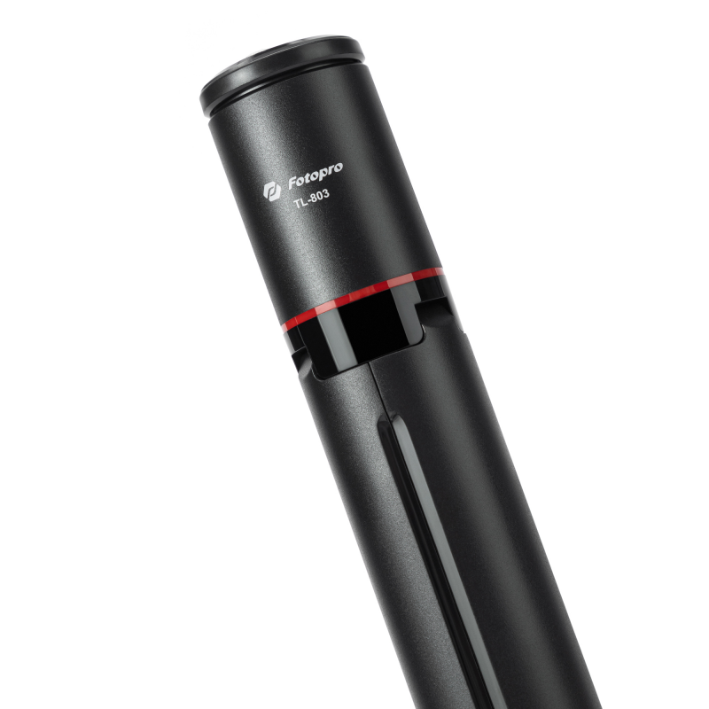 Złożony Fotopro TL-803 zamienia się w smukły walec o długości zaledwie 33,8 cm. Zero niepraktycznych rozwiązań i zero wystających elementów. Z minimalistycznej obudowy wysuwa się ukryty uchwyt na telefon. Połączenie matowych i błyszczących powierzchni nadaje konstrukcji wygląd premium. Kompaktowe wymiary pozwalają schować statyw do torby lub plecaka. Minimalistyczny design sprawia, że Fotopro TL-803 świetnie komponuje się z nowoczesnym sprzętem mobilnym.