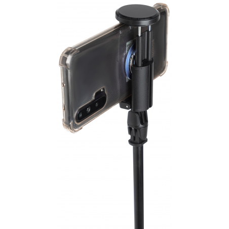 Uchwyt zintegrowany ze statywem Fotopro TL-803 pomieści telefony o szerokości od 40 do 94 mm, co oznacza kompatybilność z niemal wszystkimi smartfonami dostępnymi na rynku. Producent zadbał o odpowiedni zapas miejsca. Z uchwytu możesz korzystać, gdy telefon jest w etui lub gdy z tyłu przyklejony jest do niego „ring” na palec. Antypoślizgowe okładziny skutecznie chronią urządzenie przed zarysowaniami i zapewniają pewny chwyt. Regulacja kąta nachylenia umożliwia niemal dowolne ustawienie smartfona.