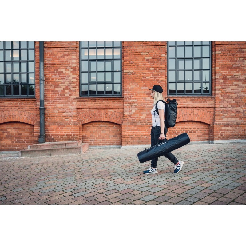 Firma Fotopro jak zwykle stanęła na wysokości zadania, jeśli chodzi o wyposażenie filmowców i fotografów we wszystkie niezbędne narzędzia ułatwiające wykonywanie ich pracy. W zestawie nie mogło zabraknąć solidnego pokrowca zamykanego na zamek błyskawiczny, który ułatwia transport statywu i zapewnia mu pełną ochronę podczas podróży. Futerał wyposażono w regulowany pasek, który sprawi, że wędrówki z Fotopro DV-2 na ramieniu będą czystą przyjemnością.