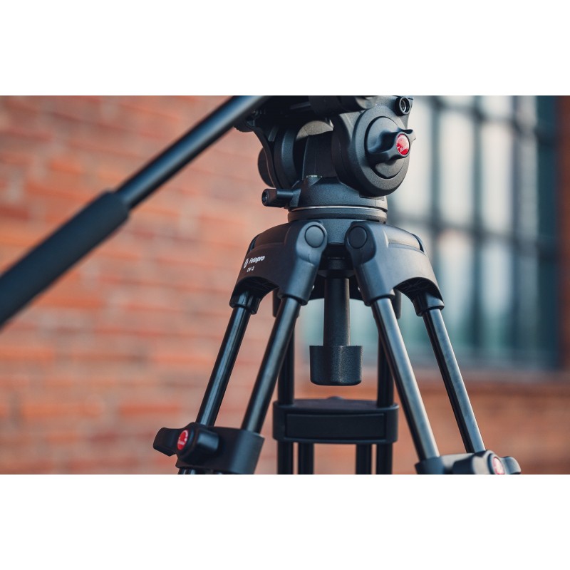 Głowica, jaką oferuje statyw video Fotopro DV-2 oferuje dwie płynnie działające osie pracy – pochyłu oraz panoramowania. Obie wyposażono w niezależne blokady, dzięki którym żaden przypadkowy ruch nie zakłóci zaplanowanego ujęcia. W celu poprawy komfortu użytkowania oś pochyłu wyposażona została również w regulowany system równoważenia kamery. W zależności od ciężaru wykorzystywanego sprzętu perfekcyjnie dopasujesz opór ruchów, ułatwiając tym samym wygodną kontrolę pracy urządzenia. Długa rączka zakończona antypoślizgowym uchwytem, którą można zainstalować po lewej i po prawej stronie głowicy, pomaga precyzyjnie zarządzać ruchami kamery. Można ją również szybko zdemontować na czas transportu.