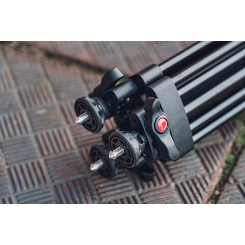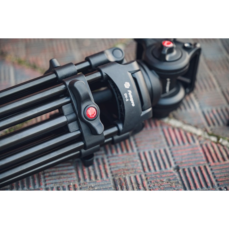 Nóżki statywu wykonano z wysokiej jakości aluminium zapewniającego wytrzymałość i pełną stabilność. Regulowana centrala pozwala perfekcyjnie dopasować środek ciężkości statywu do nietypowych obiektywów, dużych kamer filmowych lub sytuacji, gdy sprzęt ustawiony jest w nietypowej pozycji. Unikalna konstrukcja modelu Fotopro DV-2 sprawdzi się zarówno w studiu i w domu, jak i podczas zdjęć plenerowych. Gumowe antypoślizgowe nóżki można w łatwy sposób zdemontować. Zastąpią je wówczas przyczepne kolce, które zapewnią odpowiednią stabilność, gdy statyw stanie na ubitej ziemi lub piasku.
