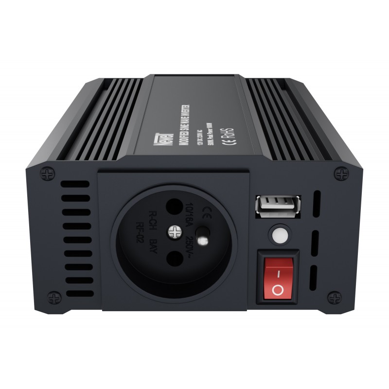 Przetwornica napięcia Newell z modyfikowaną sinusoidą - 12 V / 230 V, 500 W, którą często nazywa się również inwerterem lub falownikiem to niewielkie urządzenie, które pozwala zamienić prąd stały z akumulatora lub gniazdka zapalniczki samochodowej 12 V na prąd zmienny, z którego korzystamy w domowych gniazdkach elektrycznych. Dzięki niej zyskasz jeszcze większą niezależność podczas podróży kamperem, dalekich wycieczek samochodem lub biwaków.
