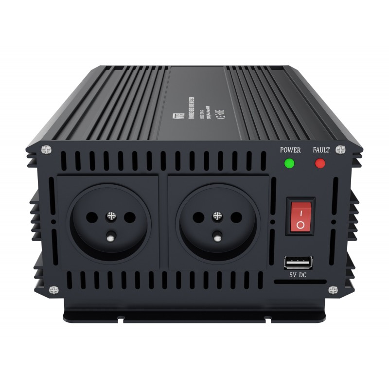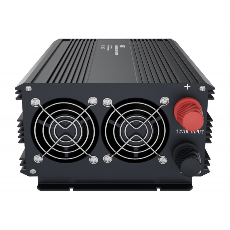 Przetwornica napięcia Newell z modyfikowaną sinusoidą - 12 V / 230 V, 2000 W generuje przebieg napięcia zbliżony do sinusoidy. Z łatwością podłączysz do niej mniej wymagające urządzenia (np. ładowarkę do laptopa lub smartfona, grzałkę lub czajnik elektryczny). Ten falownik świetnie poradzi sobie również z elektronarzędziami (np. szlifierki kątowe lub wiertarki) wyposażonymi w silniki komutatorowe. Jeśli szukasz sposobu na zasilanie urządzeń z silnikami indukcyjnymi (np. pompy wody, lodówki, klimatyzatory), kompresorów, żarówek LED lub sprzętu Hi-Fi zalecamy zakup jednego z naszych inwerterów, z prawdziwym (czystym) sinusem. Generuje on prawie identyczny przebieg w porównaniu do przebiegu w domowej sieci 230 V i daje pewność, że wymienione urządzenia będą działać prawidłowo.