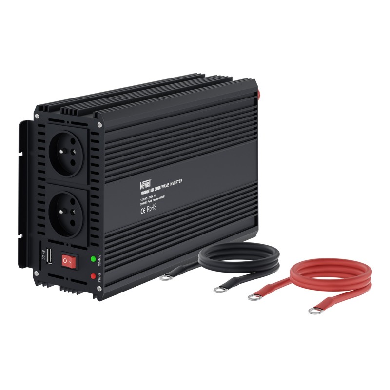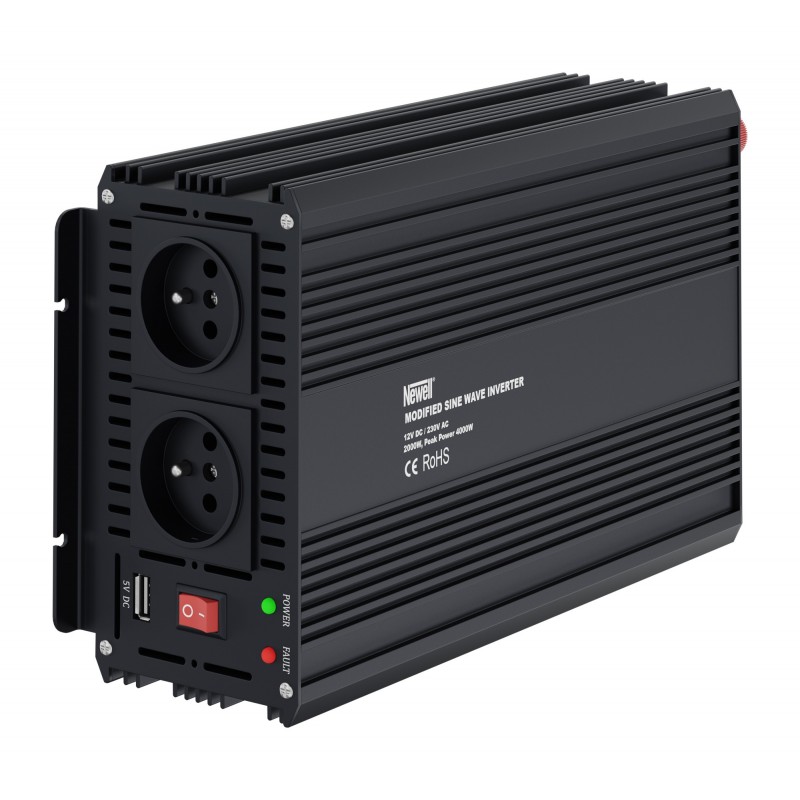 Przetwornica napięcia Newell z modyfikowaną sinusoidą - 12 V / 230 V, 2000 W, którą często nazywa się również inwerterem lub falownikiem to niewielkie urządzenie, które pozwala zamienić prąd stały z akumulatora na prąd zmienny, z którego korzystamy w domowych gniazdkach elektrycznych. Dzięki niej zyskasz jeszcze większą niezależność podczas podróży kamperem, dalekich wycieczek samochodem lub biwaków.