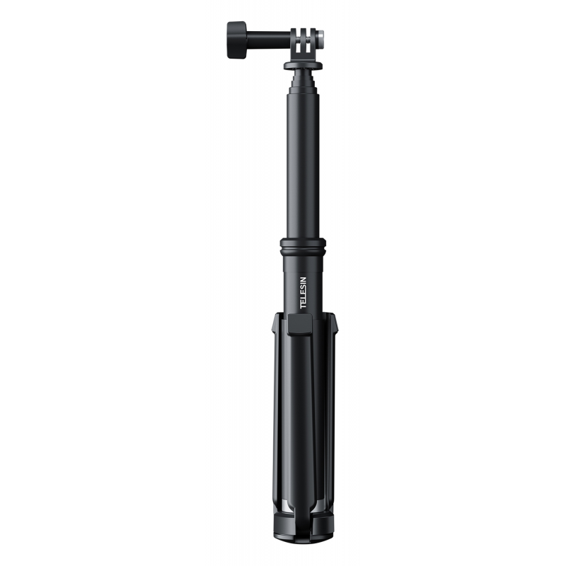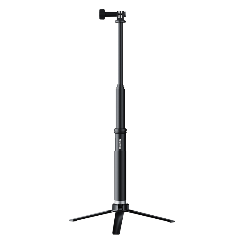 Telesin GP-MNP-090-S to pięciosekcyjny selfie stick wykonany z aluminium lotniczego. Jego maksymalna długość sięga 90 cm, a złożony mierzy zaledwie 20 cm. Każda z pięciu sekcji blokuje się pewnie w wybranej pozycji. Aluminiowa konstrukcja nie ugina się ani nie odkształca pod ciężarem kamery. Maksymalny udźwig statywu to aż 1 kilogram. Antypoślizgowy uchwyt wykończony tworzywem TPU sprawia, że kijek pewnie leży w dłoni niezależnie od warunków, w jakich nagrywasz lub fotografujesz.