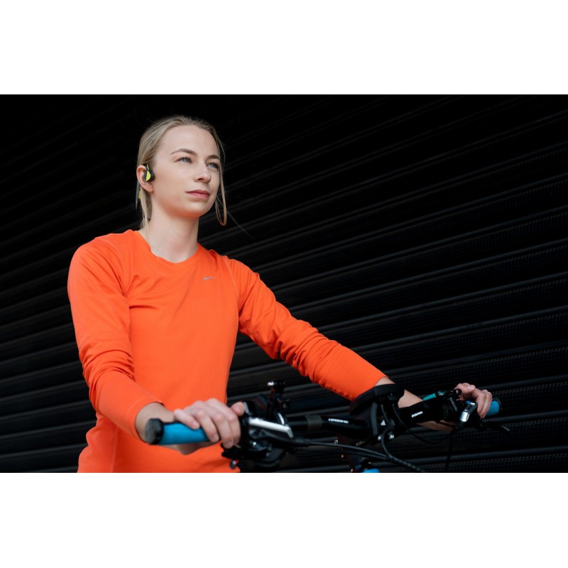 Nie trudno jest się zapomnieć, gdy podczas biegania lub jazdy na rowerze towarzyszą nam ulubione albumy muzyczne lub wciągające podcasty. Korzystając z słuchawek należy jednak pamiętać o tym, że odcięcie się od dźwięków otoczenia wiąże się z wieloma niebezpieczeństwami. Aby w porę usłyszeć sygnał ostrzegawczy lub głos innych uczestników ruchu drogowego, warto postawić na technologię przewodnictwa kostnego. Ponieważ słuchawki nie znajdują się w naszych uszach, możemy pozostać w kontakcie z otoczeniem, uniknąć niebezpieczeństw i cieszyć się z komfortu oraz wygody. Będzie to również idealne rozwiązanie dla młodszych członków rodziny, którym chcemy zapewnić większy poziom bezpieczeństwa na drodze i zadbać o ochronę ich słuchu!