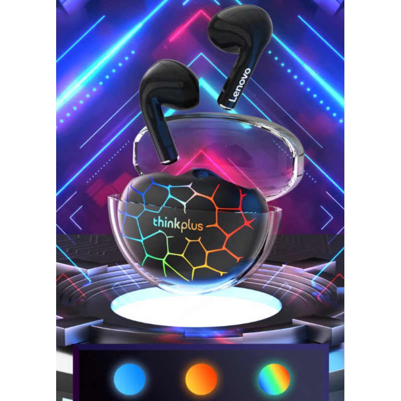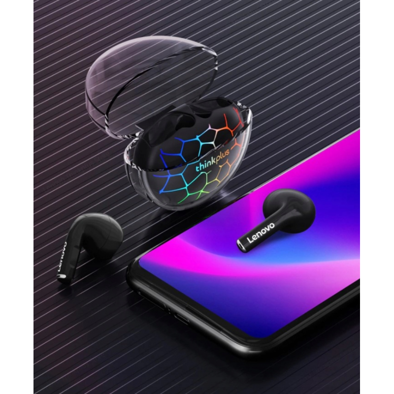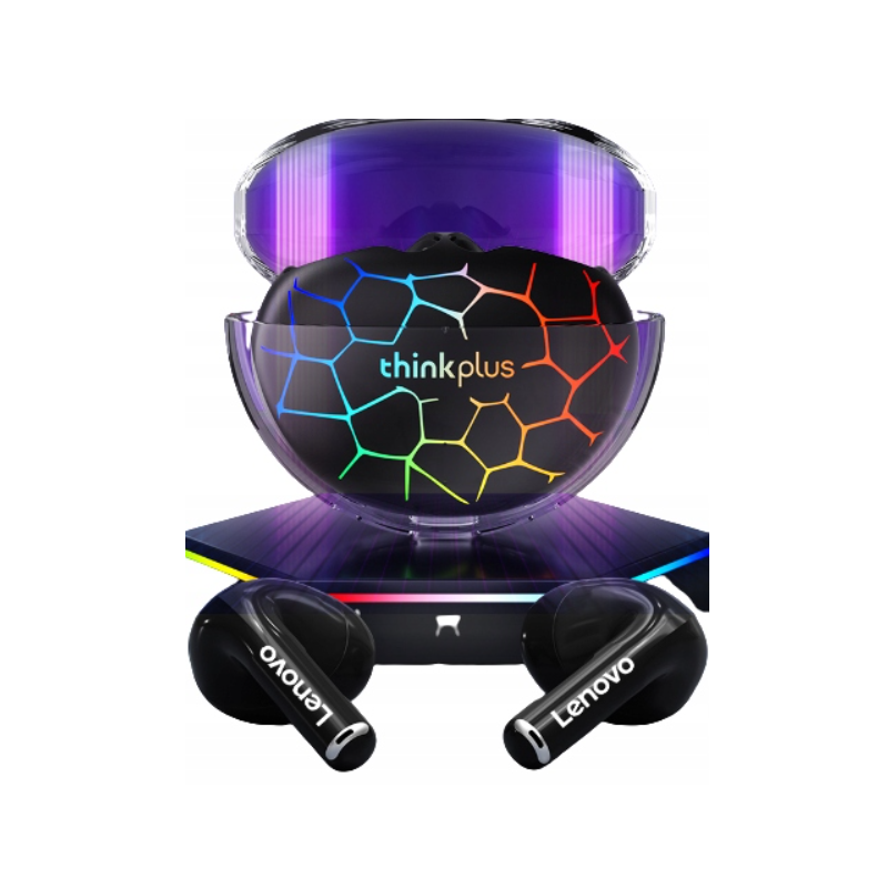 Słuchawki bezprzewodowe Lenovo LP80 Pro RGB to doskonały wybór dla miłośników nowoczesnego i niepowtarzalnego designu. Unikalne etui ładujące z trzema trybami wielokolorowego podświetlenia pozwoli Ci skutecznie wyróżnić się z tłumu. Lekkie i dobrze dopasowane słuchawki świetnie sprawdzą się podczas słuchania muzyki, oglądania filmów i grania w gry. Niska latencja i transmisja "dual-channel" gwarantują doskonałe wrażenia dźwiękowe. Dzięki intuicyjnej obsłudze dotykowej, sterowanie odtwarzaniem i odbieranie połączeń będzie proste i przyjemne.