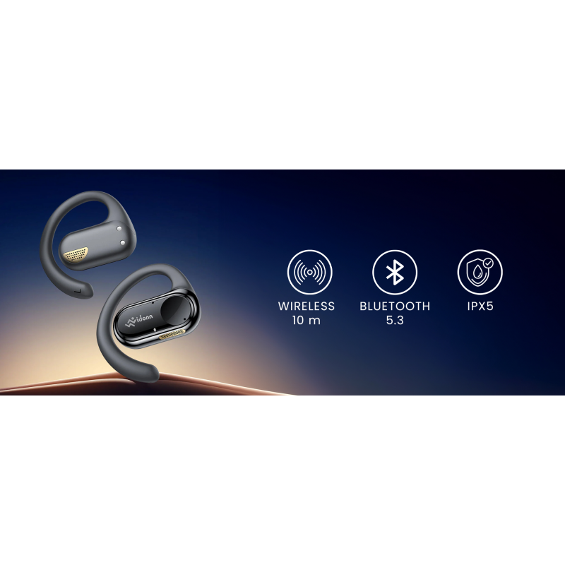 Słuchawki bezprzewodowe Vidonn T3 charakteryzują się ergonomiczną konstrukcją, która zapewnia maksymalny komfort użytkowania. BUdowa "Open Ear" sprawia, że nie blokują one kanału słuchowego, co pozwala zachować kontakt z otoczeniem i uniknąć potencjalnych zagrożeń. Dzięki unikalnej konstrukcji poczujesz się bezpieczniej podczas codziennego użytkownika. To znakomita alternatywa dla tradycyjnych słuchawek, które trzeba zakładać na uszy lub umieszczać wewnątrz małżowiny.