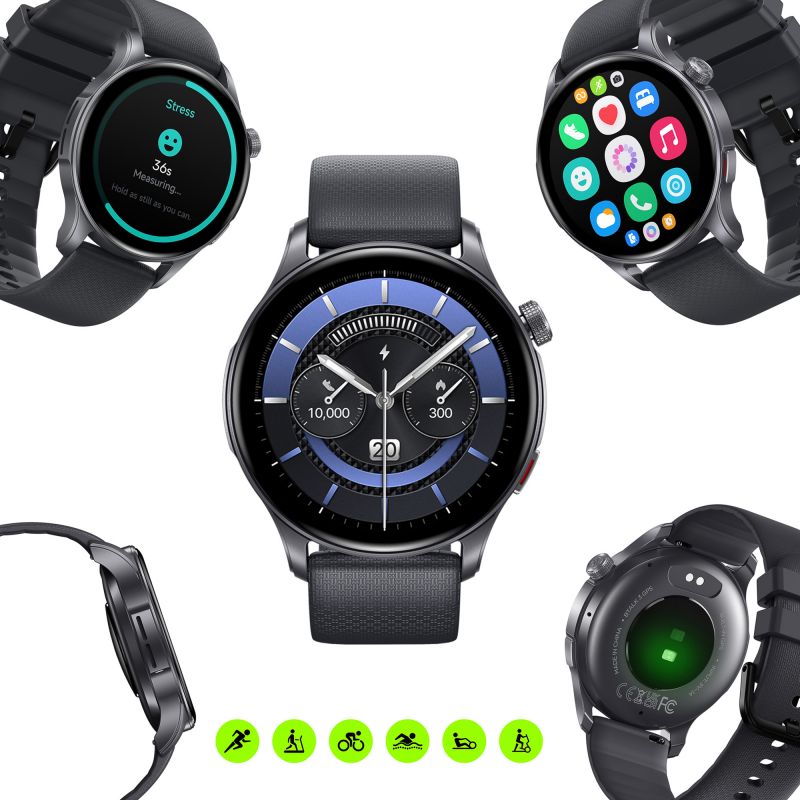 Zeblaze Btalk 3 GPS to nie tylko zegarek, ale także osobisty system monitoringu Twojego stanu zdrowia. Całodobowe pomiary tętna, saturacji krwi (SpO₂) oraz poziomu stresu pozwolą na bieżąco oceniać kondycję organizmu. Dodatkowo smartwatch oferuje ćwiczenia oddechowe pomagające się zrelaksować, a zaawansowana analiza snu wspiera regenerację. Na pokładzie nie zabrakło też funkcji śledzenia cyklu menstruacyjnego dla pań.