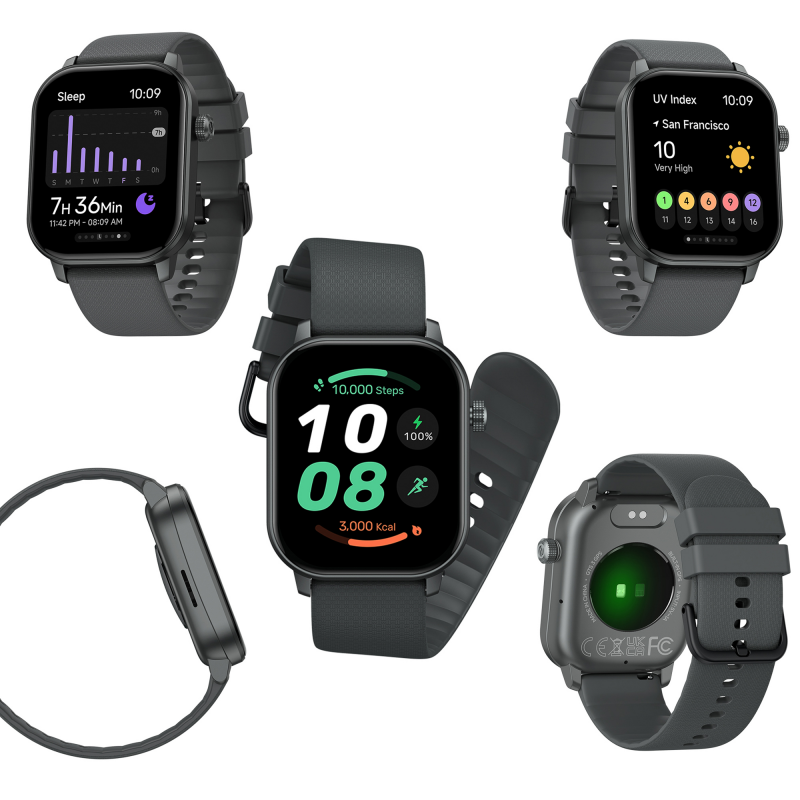 • prostokątny smartwatch z dużym ekranem, GPS i funkcjami zdrowotnymi
