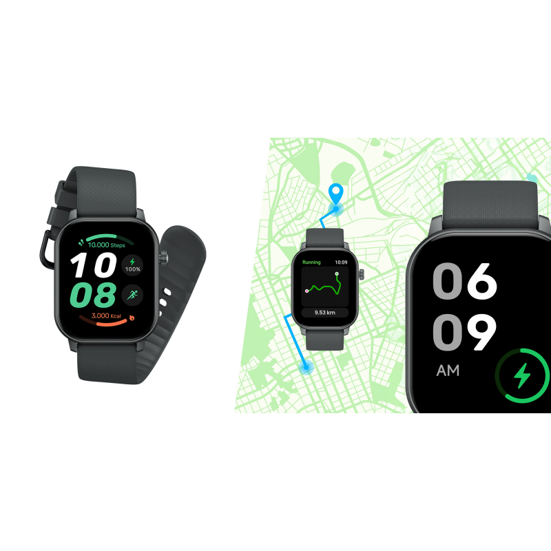 W zestawie znajdziesz aż dwa paski: silikonowy, idealny na trening i codzienne aktywności, oraz nylonowy – lżejszy, bardziej przewiewny i świetnie sprawdzający się podczas dłuższego noszenia. Oba są wygodne, łatwe do wymiany i kompatybilne z popularnym mocowaniem o szerokości 22 mm. Dzięki temu możesz błyskawicznie dopasować wygląd zegarka do sytuacji – od siłowni po oficjalne spotkanie biznesowe.