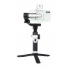 FeiyuTech Scorp mini P w wariancie Kit to jeszcze więcej możliwości pracy z gimbalem. Podstawowy zestaw uzupełniono bowiem o lampkę magnetyczną, moduł śledzenia, adapter pozwalający podłączyć do gimbala dodatkowe akcesoria oraz walizkę transportową. Dwa uchwyty umożliwiają wygodną realizację ujęć w różnych pozycjach. Kontrola gimbala może odbywać się za pomocą przycisków lub z poziomu bezpłatnej aplikacji Feiyu ON. Specjalne pokrętło "Magic Wheel", "trigger button" umieszczony pod palcem wskazującym, a także błyskawiczne wyważanie i unikalne tryby działania dodatkowo ułatwią wygodną pracę. Na gimbalu z powodzeniem zainstalujesz urządzenia o maks. wadze 520 g i szerokości od 55 do 88 mm. Wbudowany akumulator zapewni nawet do 11 h nieprzerwanego działania.