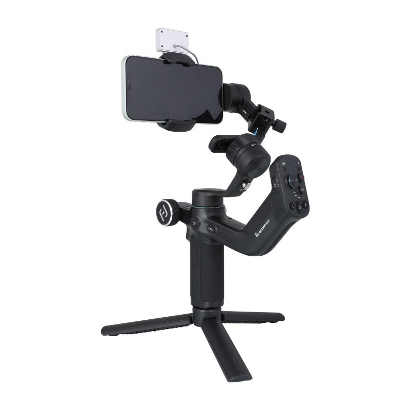 Gimbal ręczny FeiyuTech Scorp mini P pozwoli Ci raz na zawsze zapomnieć o niechcianych drganiach, gdy filmujesz za pomocą smartfona. Dzięki precyzyjnej pracy silników i solidnej konstrukcji wykonanej z aluminium lotniczego zyskasz doskonałą stabilność i płynność ujęć. Gimbal z powodzeniem poradzi sobie z urządzeniami o wadze do 520 gramów. FeiyuTech Scorp mini P będzie więc kompatybilny z niemal każdym smartfonem dostępnym na rynku, którego przekątna nie przekracza 7 cali.