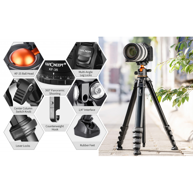 K&F Concept M1 z głowicą kulową BH-36L gwarantuje stabilność na profesjonalnym poziomie. Wszystko za sprawą ergonomicznej konstrukcji nóg. Statyw zapewnia niezwykle pewne ustawienie, co jest kluczowe przy pracy z cięższymi aparatami czy obiektywami. Dzięki udźwigowi do 15 kg możesz swobodnie korzystać z zaawansowanego sprzętu fotograficznego bez obaw o utratę stabilności.