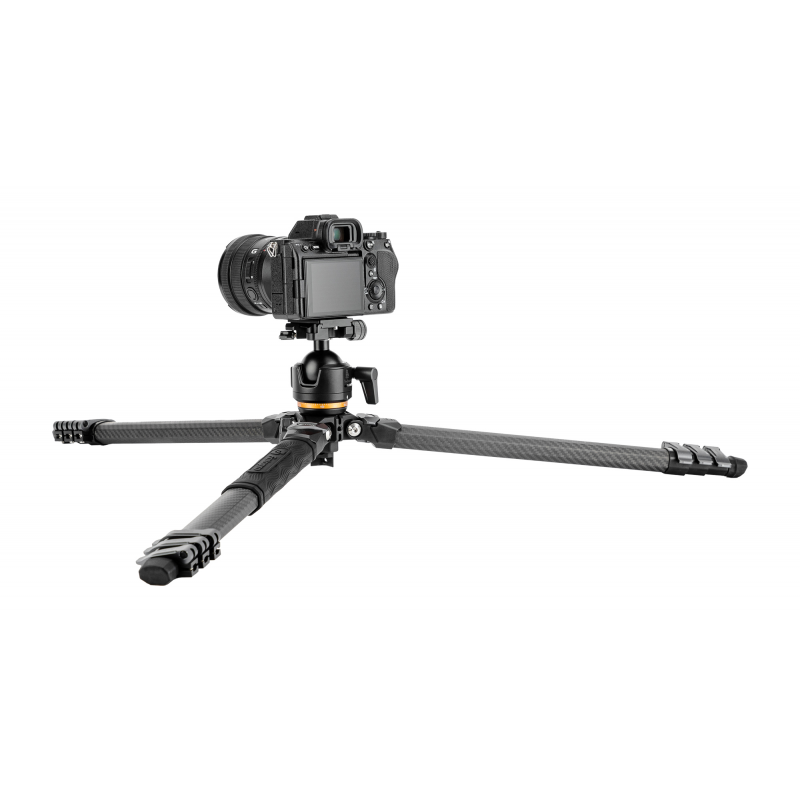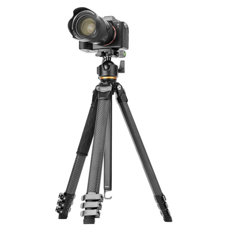 Statyw Fotopro Origin Plus z głowicą kulową O-8H to nieoceniony towarzysz każdej podróży. Łączy w sobie imponującą lekkość (tylko 1,53 kg), wytrzymałość oraz duży udźwig na maks. poziomie 20 kg. Konstrukcja bez problemu poradzi sobie z profesjonalnymi lustrzankami, kamerami oraz masywnymi obiektywami. Po złożeniu jego długość wynosi 50,6 cm. Dzięki temu bez trudu zmieści się w bocznej kieszeni plecaka albo w specjalnej, dołączonej do zestawu torbie.