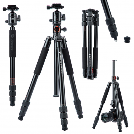 Mimo zaledwie 1,5 kg wagi statyw Fotopro X-go HR Chameleon E2 oferuje imponujący udźwig do 8 kg. To wystarczająco dużo, aby z powodzeniem poradzić sobie z profesjonalnymi lustrzankami, bezlusterkowcami z długimi obiektywami czy zestawami filmowymi. Aluminiowa konstrukcja z rurkami o maks. średnicy 25 mm gwarantuje stabilność i odporność na drgania. System czterech sekcji nóg z regulowanym kątem nachylenia pozwala dopasować ustawienie do nierównego terenu, a ergonomiczne obrotowe zaciski wymagają zaledwie 1/4 obrotu, aby błyskawicznie zablokować wybraną wysokość.