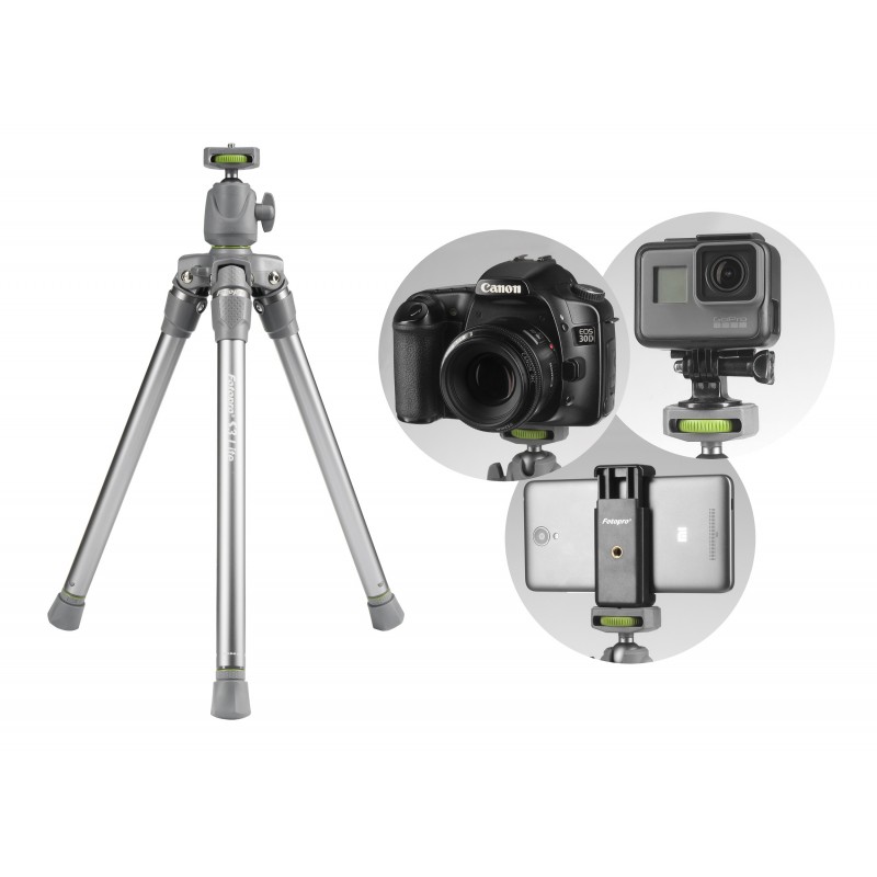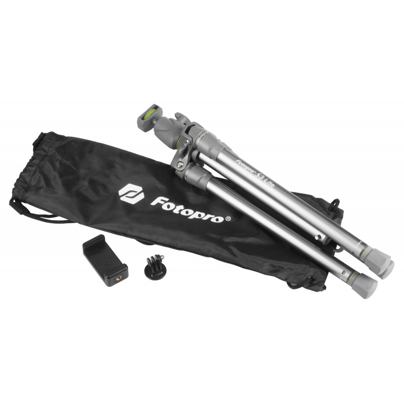 Fotopro S3 Lite to ultralekki statyw zaprojektowany z myślą o niewielkich lustrzankach cyfrowych, aparatach bezusterkowych, kamerach sportowych i smartfonach.