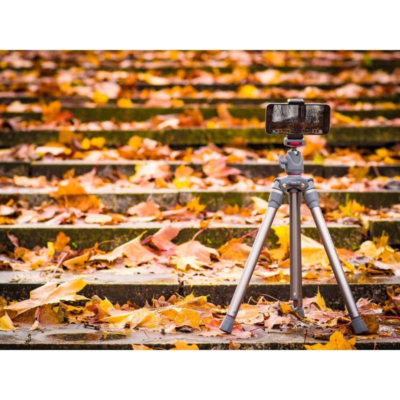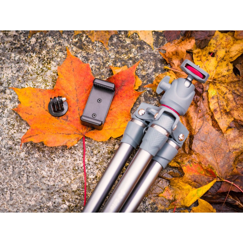 Wraz ze statywem w opakowaniu znajduje się uchwyt do smartfonów, adapter do systemu GoPro, dwa klucze imbusowe oraz praktyczny pokrowiec transportowy.