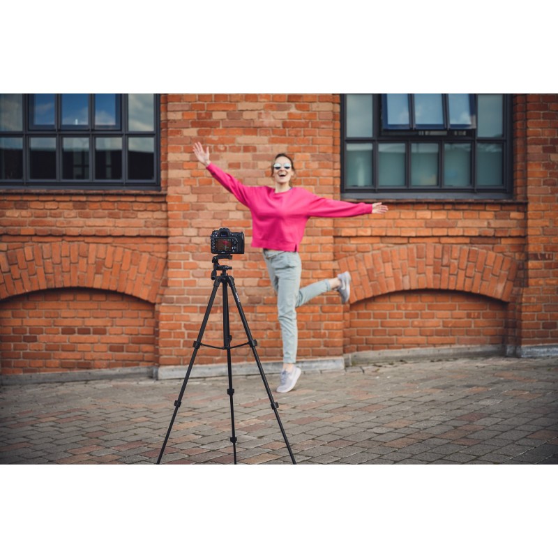 Trójnóg z powodzeniem poradzi sobie ze sprzętem o masie do 3 kg, dzięki czemu zainstalujesz na nim nie tylko popularne smartfony i kamerki sportowe, ale również bezlusterkowce z wymienną optyką. Jego maksymalna wysokość robocza, wynosząca 149 cm zapewni wygodne kadrowanie podczas realizowania domowych vlogów lub streamów niezależnie od tego jak wysoki/wysoka jesteś! Aluminiowe nogi zakończone antypoślizgowymi stopkami to gwarancja stabilności oraz wytrzymałości. Ich 4 rozkładane sekcje wyposażone w wygodny system zacisków pozwolą szybko ustawić optymalną wysokość kadru. Wysuwana kolumna centralna umożliwi również szybką korekcję, której dokonasz w ciągu kilku sekund!
