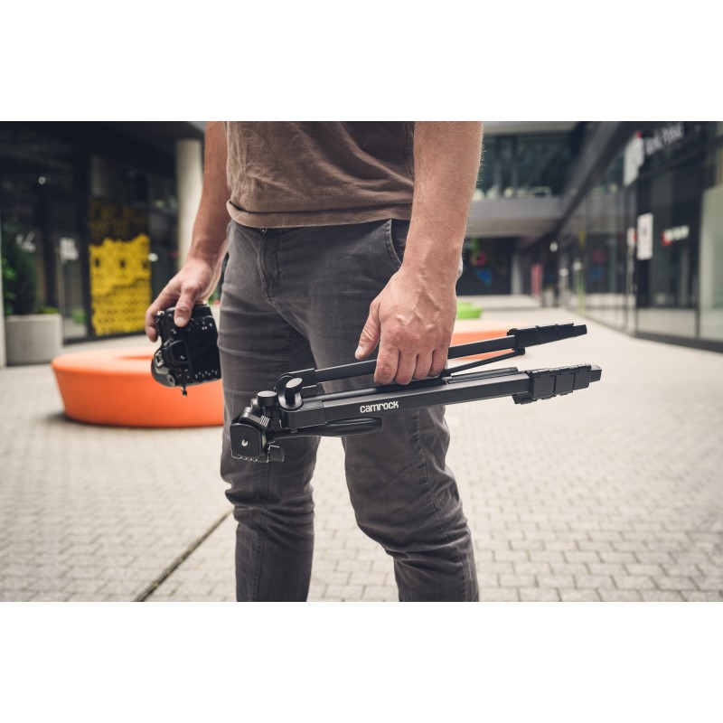 Camrock CP-530 to poręczny i lekki statyw stworzony z myślą o youtuberach, vlogerach, twórcach wideo i amatorach fotografii. Urządzenie waży zaledwie 660 gramów, a po złożeniu jego długość wynosi trochę ponad 40 centymetrów. Dzięki takim parametrom zabierzesz go w każdą podróż, nie tracąc zbyt wiele przestrzeni w swoim plecaku lub torbie. Statyw wyposażono w ergonomiczną głowicę 3D z poziomicą. Dzięki niej szybko i wygodnie ustawisz odpowiedni kadr. Wysuwana kolumna centralna pozwoli też dopasować jego wysokość, bez konieczności regulowania wszystkich nóg. Dzięki dołącznej do zestawu szybkozłączce wypięcie aparatu ze statywu potrwa zaledwie sekundę!